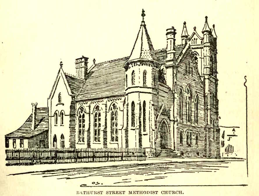 A decade later, a larger church was built on the southwest corner of Bathurst and Lennox. The present church was erected in 1888. It cost thirty thousand dollars. A Sunday school building was added in 1910.